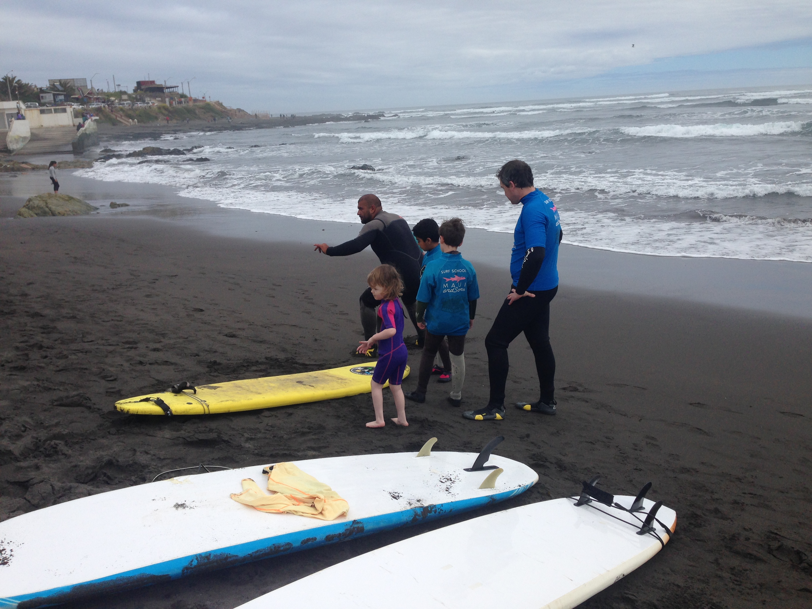 Clearly if it’s good enough for Jack Johnson, it’s good enough for us! So we decided we all had to take surf lessons. I think our middle son got about as far as getting into the wet suit. Then he happily played in the black sand all morning. I went out and even with the full wet suit on, man, that water is cold! I’m from NS so I know cold water and we lived in the UK so we know how cold the English Channel is but wow, Chile is chilly! The water felt like knives on my hands. And also, surfing is really hard! I did manage a few hops up but after about half an hour the instructor said to me, “You don’t work out, do you?” After that, I decided I would be better watching the children on the beach. My husband and our eldest (8 at the time) took about four lessons and really enjoyed it.