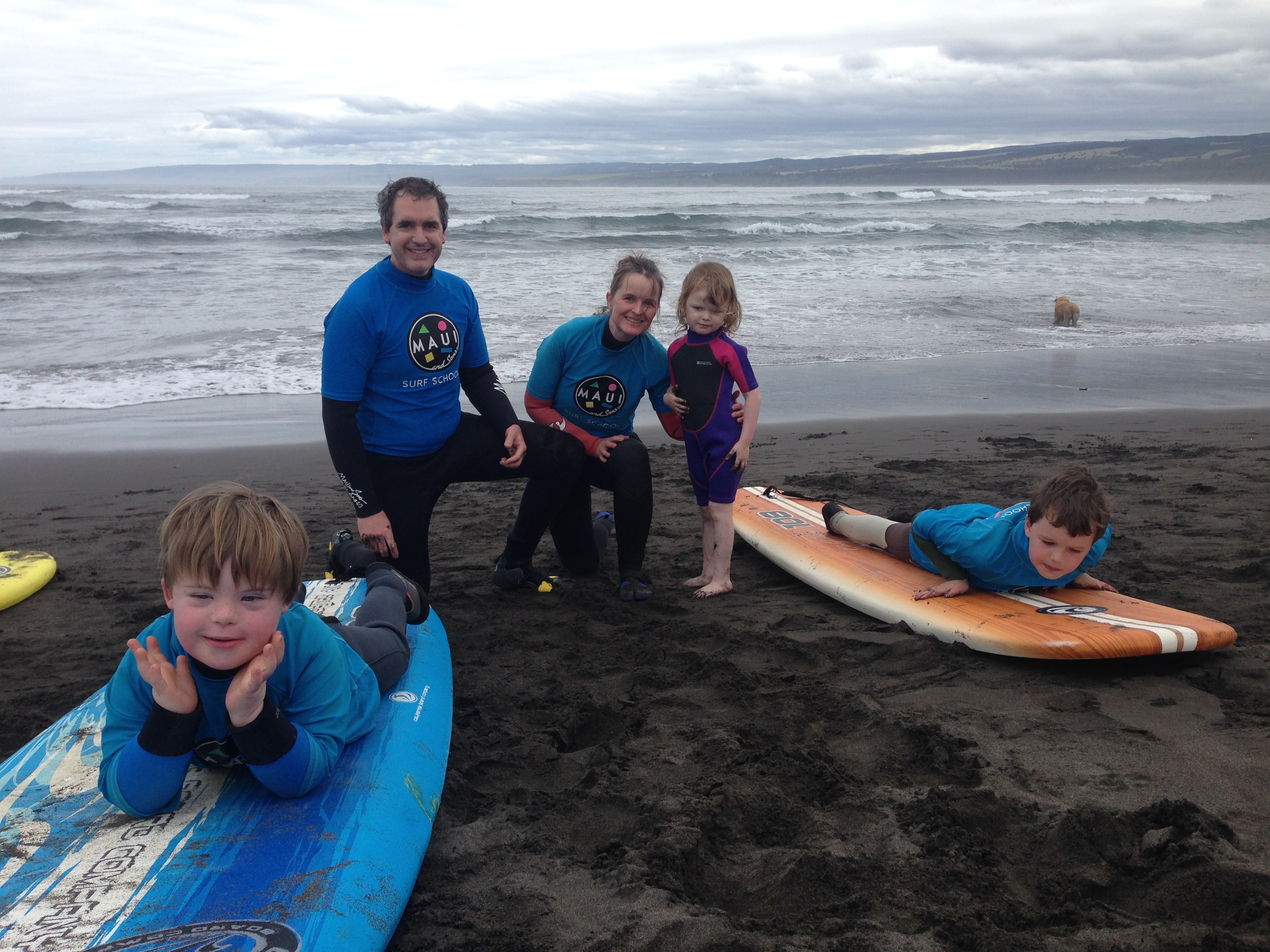 I can highly recommend Elvis Munoz and his Escuela de Surf as he and his crew were great with the children and really communicative about the best time (for the waves) to arrive and have a lesson. Wet suits and gear are provided as well.