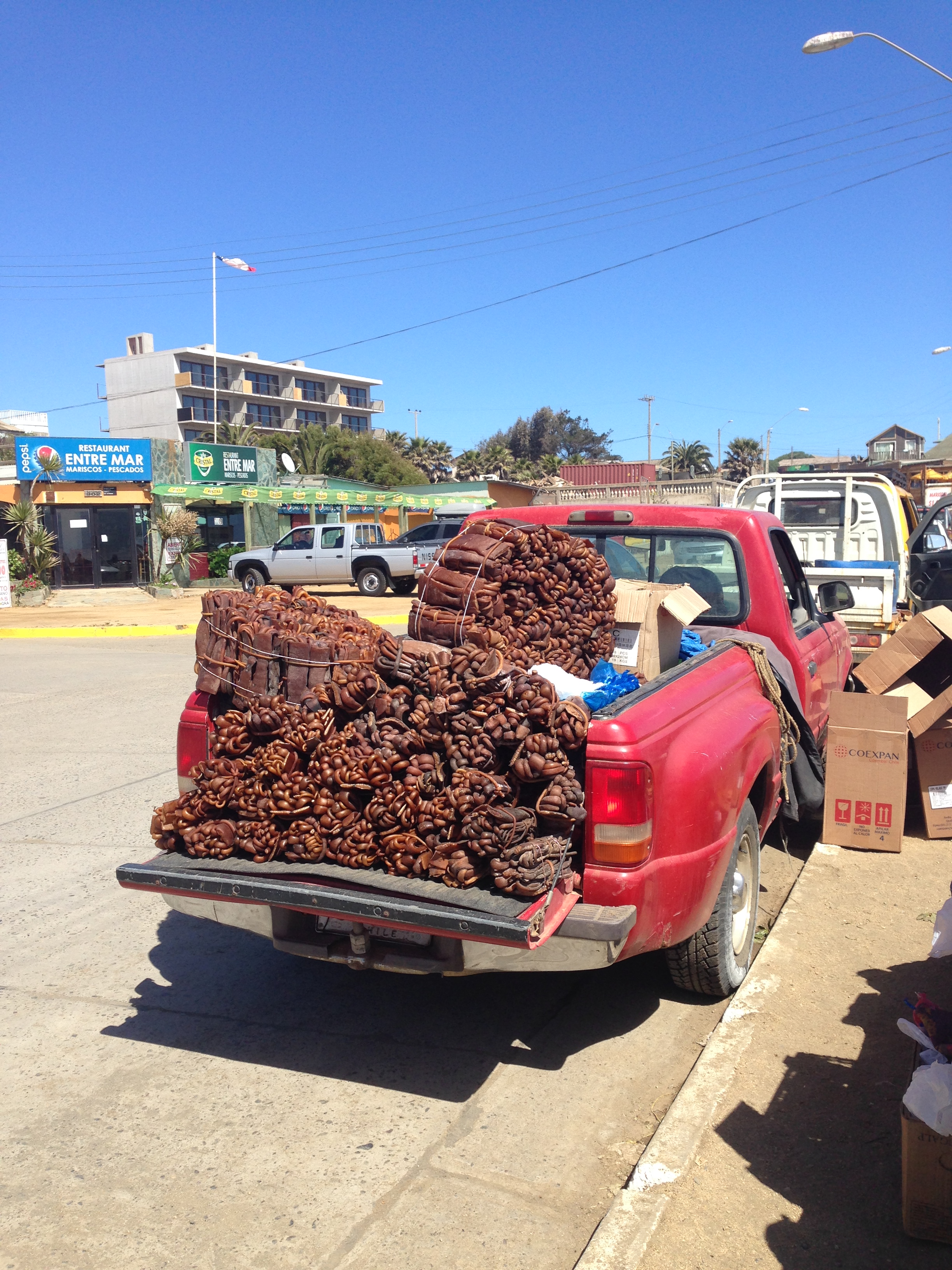 Continuing on to Pichilemu we arrived and drove through town and down to the water. Having just moved from the UK we had visions of Cornwall dancing in our head and Pichilemu is more of South American coastal town vibe. It has a lot of small shops selling ice cream sandwiches, shells, plastic beach gear and cheap toys to amuse the children on the beach. You can also watch them load up their trucks with the local delicacy, cochayuyo, a rubbery seaweed that our eldest likes to chew like a local and he calls it his ‘gum’.