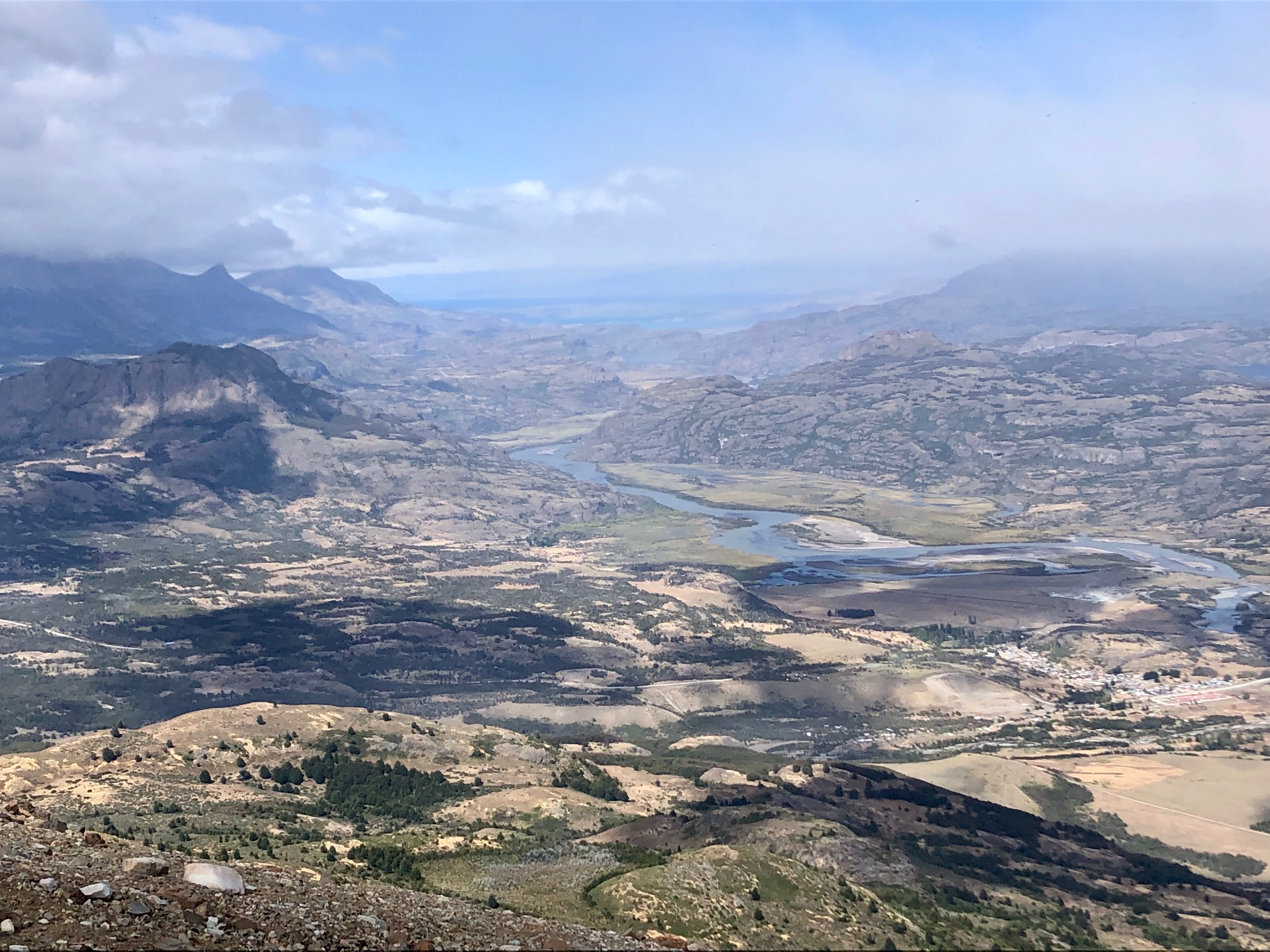 We took the Sendero Emergencia (emergency route) which is the day hike route from Villa Cerro Castillo up to the mirador. It was a great choice. Lots of rocks but the path winds down through them (at some points with a rope handrail!), then scrubby trees, then forest and finally a rocky farm road to town. It has gorgeous views all the way down. We called Clara at the mirador so she could estimate when to come and pick us up at the bottom. It was pretty dusty. But we had a gorgeous rainbow and views of the snow-capped Andes behind the winding river. A good promise for the next 20 years!