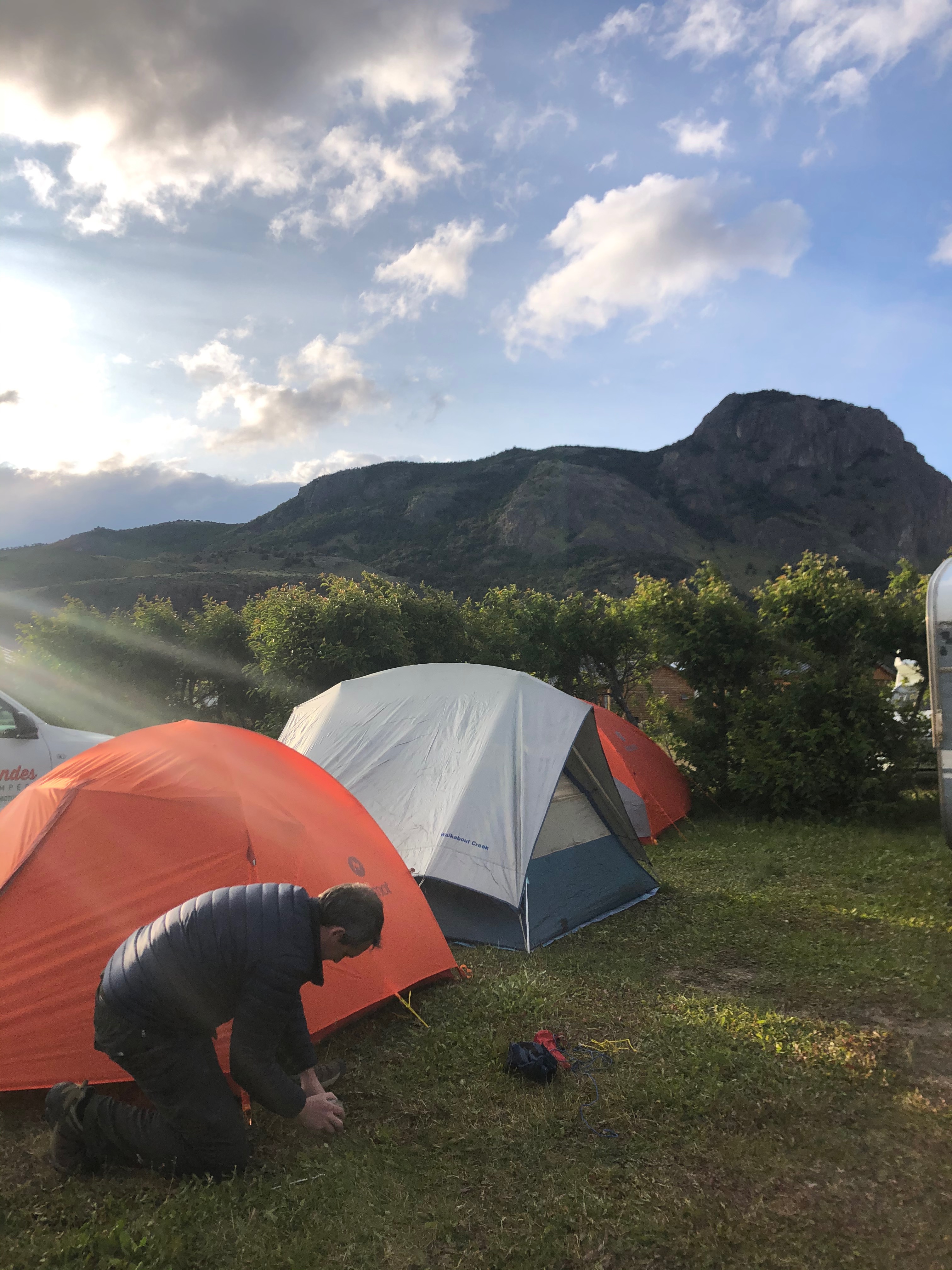 We left Puerto Natales at 9 a.m. and arrived in El Calafate just in time for lunch. This town is the best of the best. It has great cafes, restaurants, chocolate shops, ice cream parlours and a pretty good grocery store. We stopped at the Cerveza Patagonia and had a huge lunch, bought groceries and gassed up. Two hours later we continued on to El Chalten, arriving at 7 p.m. at night. The sunset in early January was 10:30 p.m. so we still had time to set up the tents and eat supper.