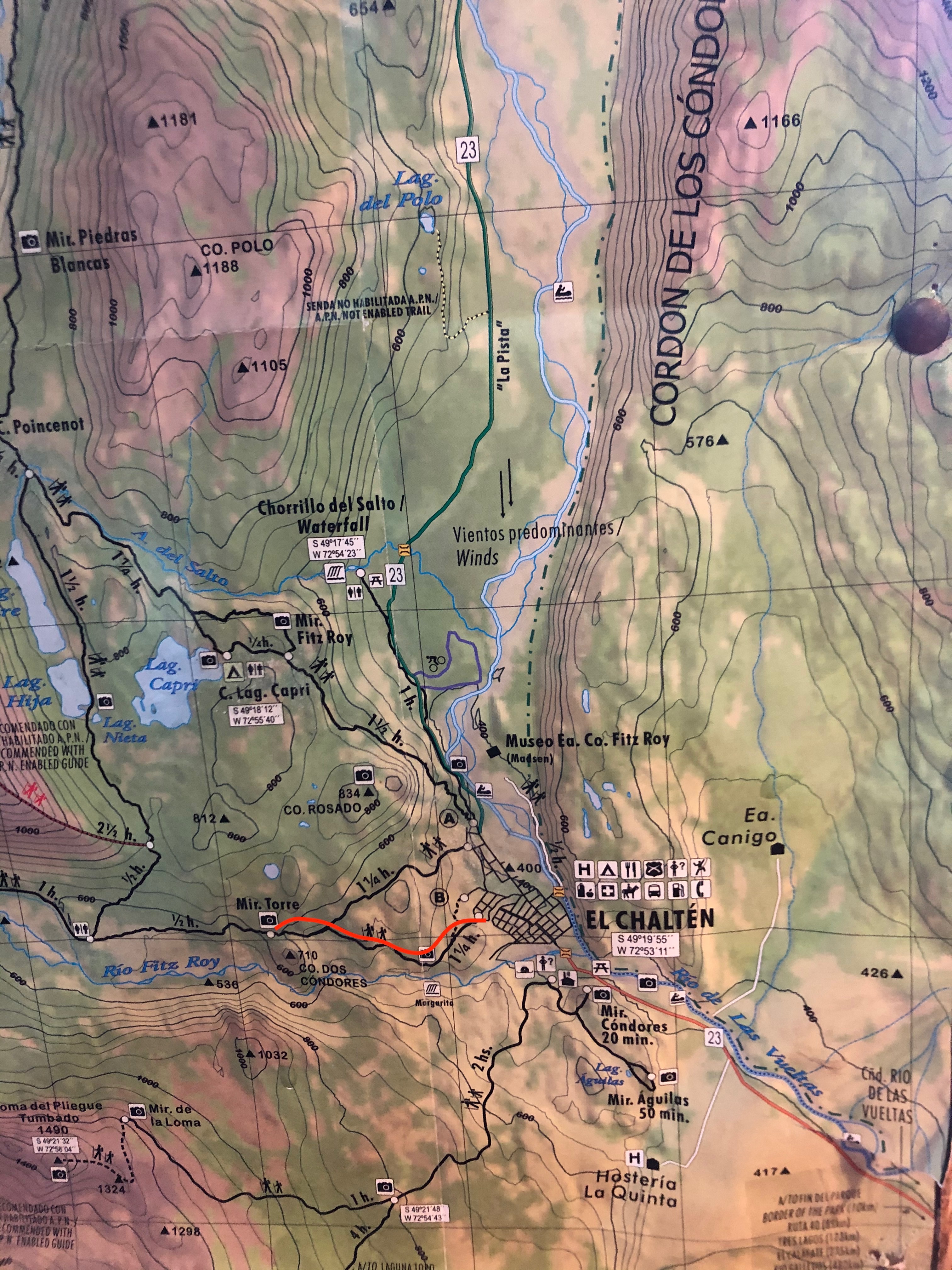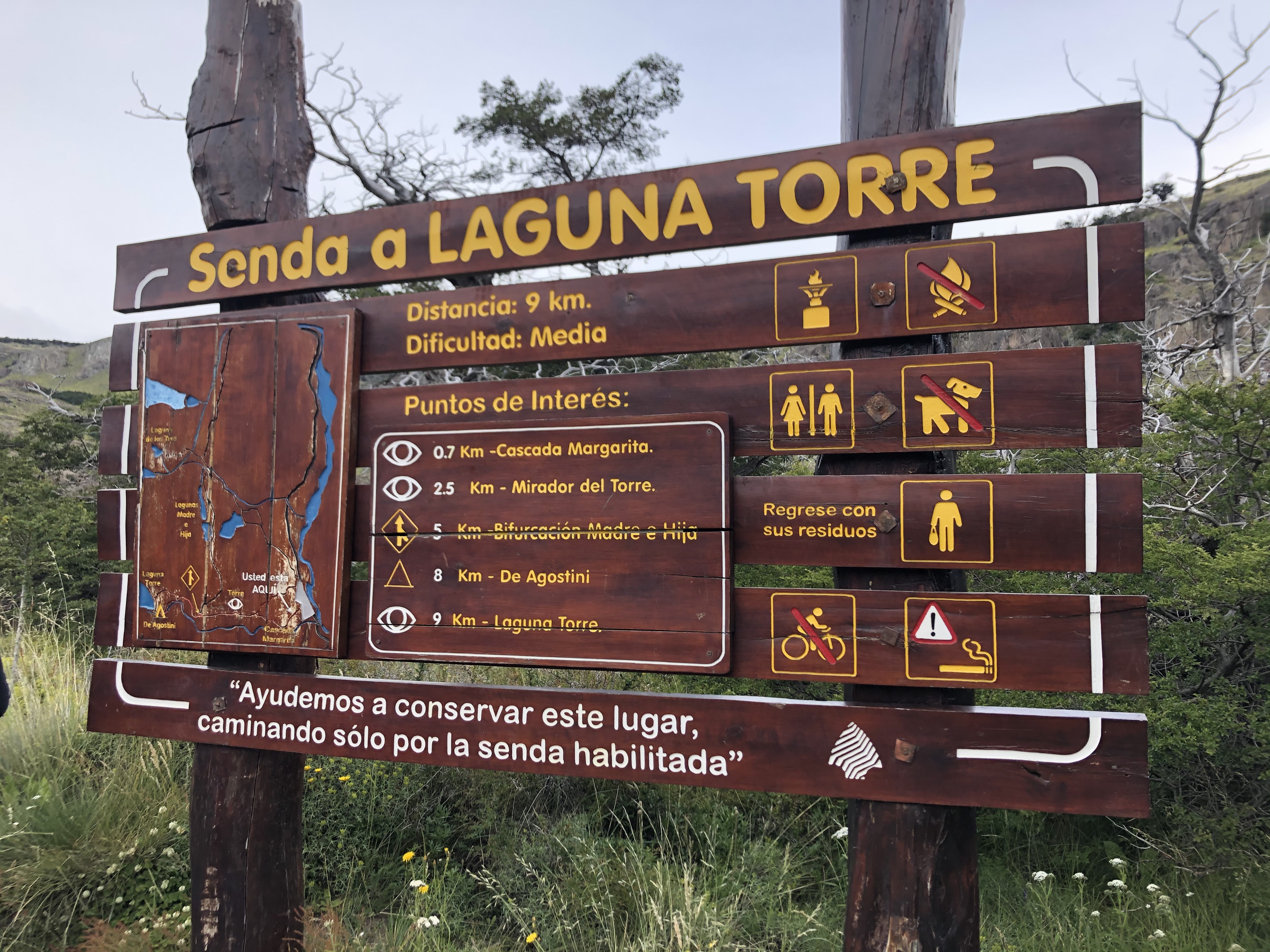 Day 2 — Sendero Laguna Torre. We had overcast weather and a few spits of rain but we headed out to the Sendero Laguna Torre hike, also may be referred to as Cascada Margarita hike. The access is just off the main road, behind the lodge like hotel and up the hill. You will see signs on the main road.