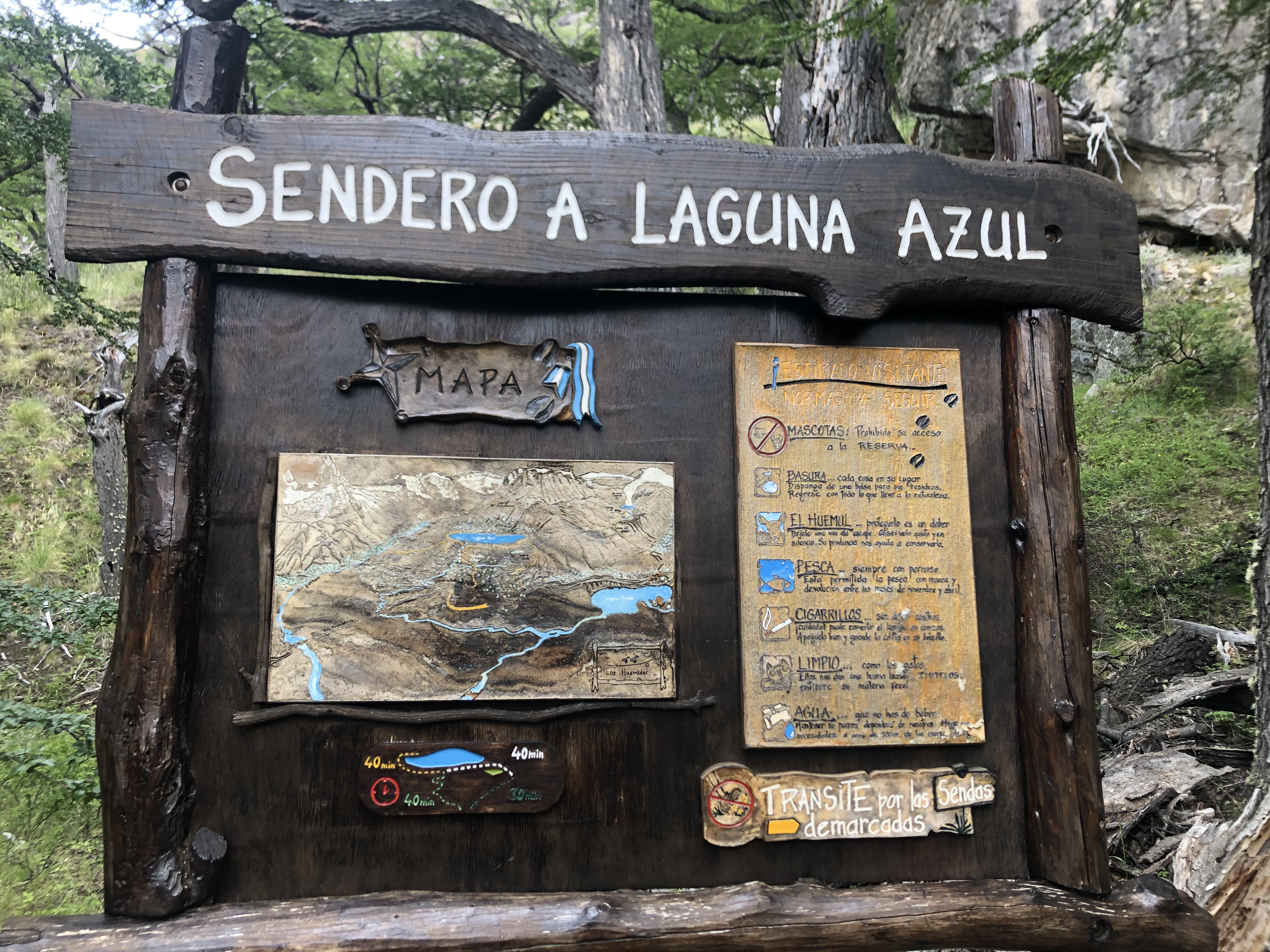 Day 3 — Laguna Azul y Verde. The last full day we had great clear views of Mt Fitzroy and the mountain range. It was beautiful. We drove down the main road, highway 23, through town and towards the park office. The road quickly turned to gravel washboard but with nice views as you follow a river on your right and the mountain range is on your left. We passed a nice campsite called Bonanza along the river. It was really shady and had a nice rustic treehouse-like playground. But as it was so shaded I think it could be a very cold campsite. We also passed some nice hosterias as well. It would be really beautiful to camp or stay out this end of town if you didn’t need access to town for supplies. We drove for about 40 min until we came to Reserve Los Huemules.