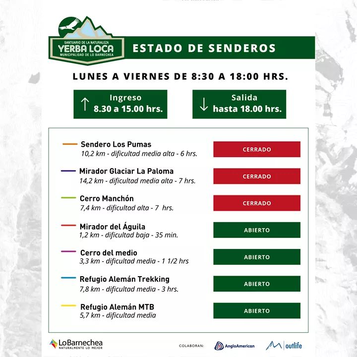 From my communa of Lo Barnechea, we can access Yerba Loca (current quarantine rules) Monday to Friday. You must register and pay online the day before and before noon. If your registration doesn’t go through, email outlife, (contacto@outlife.cl) the company who manages the park, and they will confirm your name is on the list. We were turned away in August because our registration went through after 12 noon, and it’s an early morning to face such disappointment! Bring a printed copy of your form.
