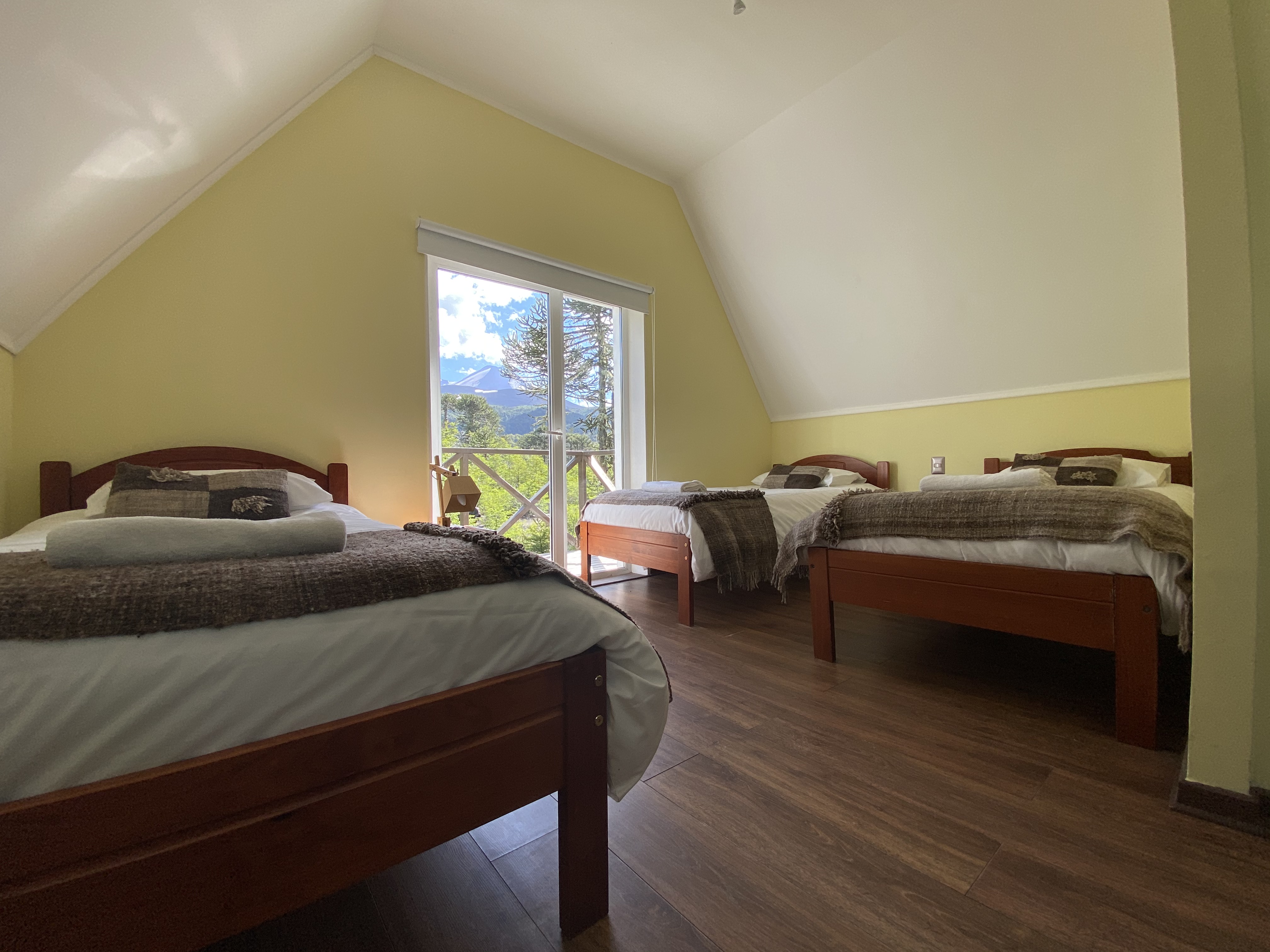 We stayed in cabins run by Sendas Conguillío. We are a family of five and booked the 7 person cabin, we saw a few of them and the cabin named Conguillío was our least favourite as it didn’t have a view of the volcano from the main rooms or porch of the cabin. Icalma and Gaullete cabins both had great views so the cabins near them would be a good choice. We stayed one night in Icalma and then moved to Gaullete for the rest of our stay. The cabins are fully equipped, with comfortable beds and a wood-fired hot tub you can use in the seasons outside of summer (fire hazard).