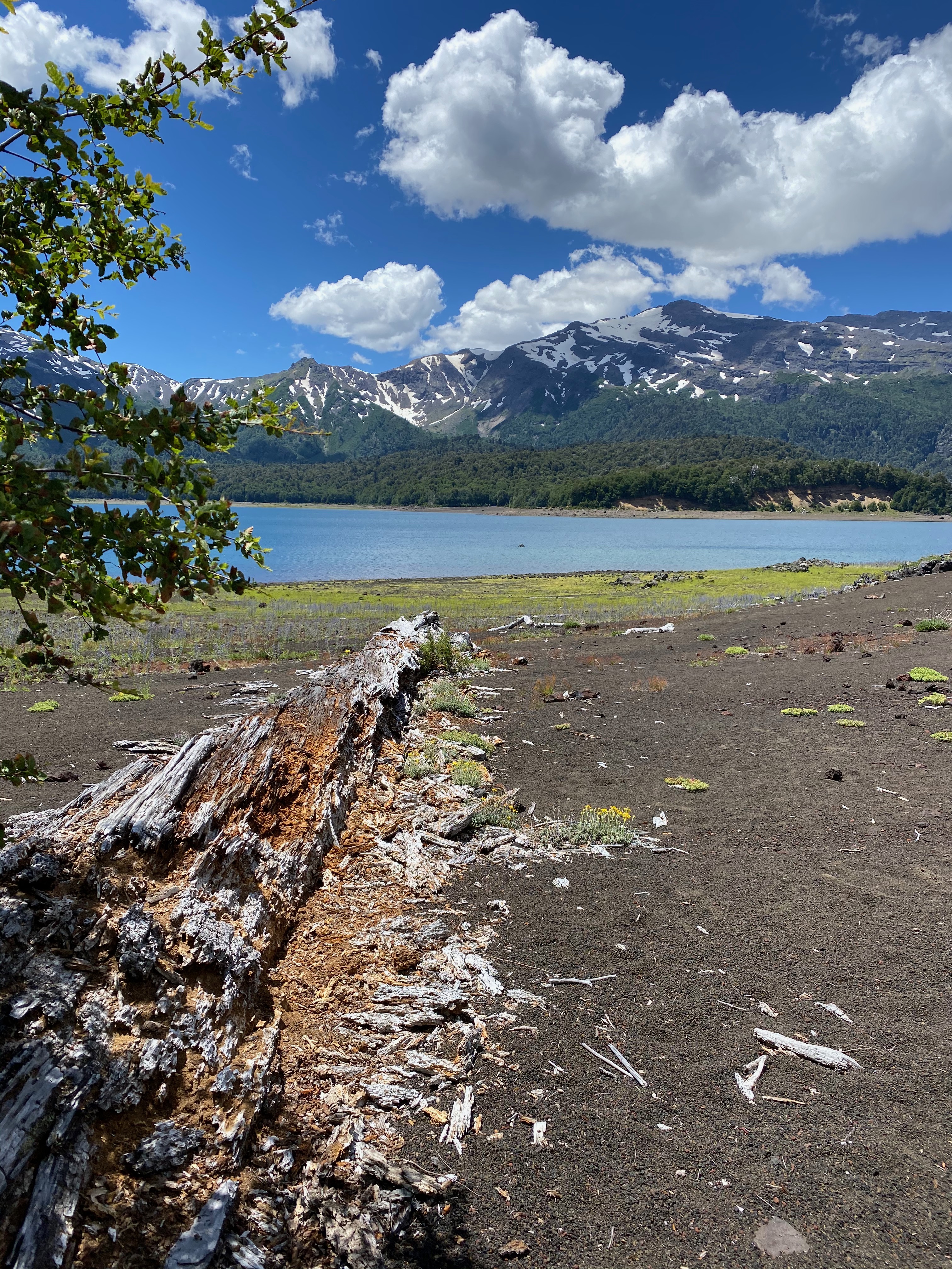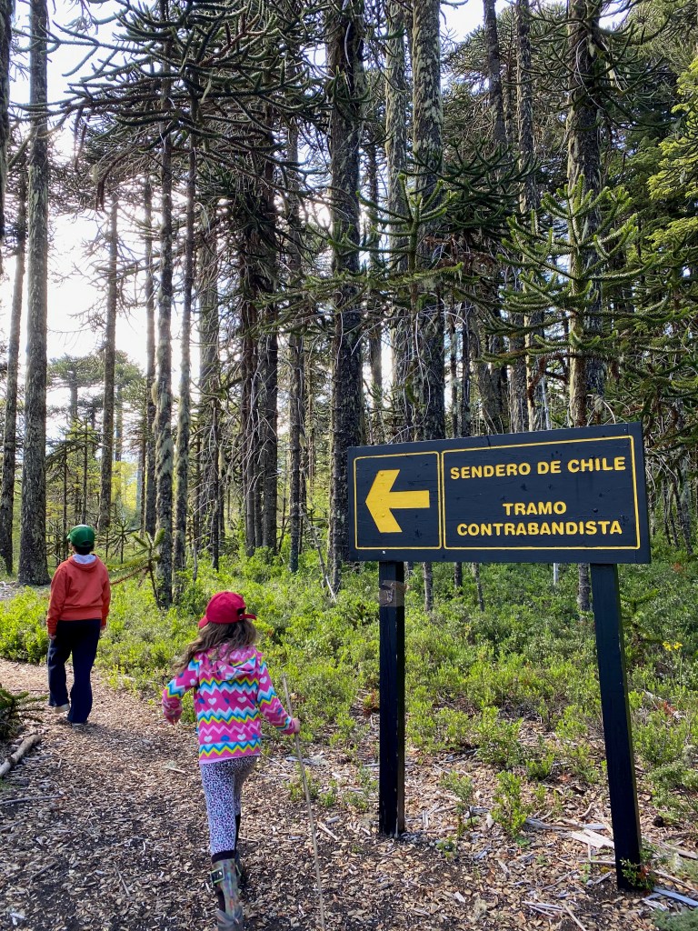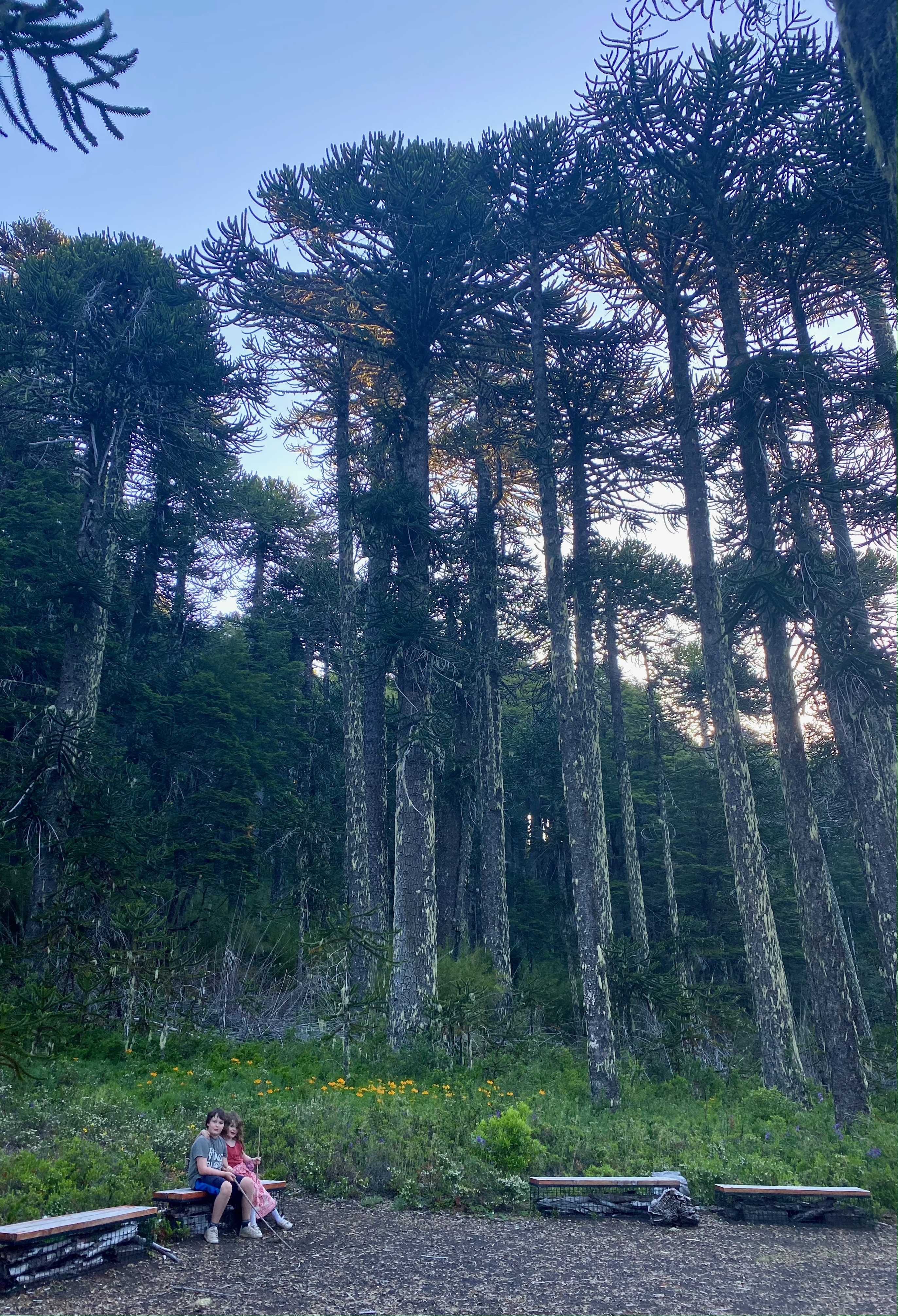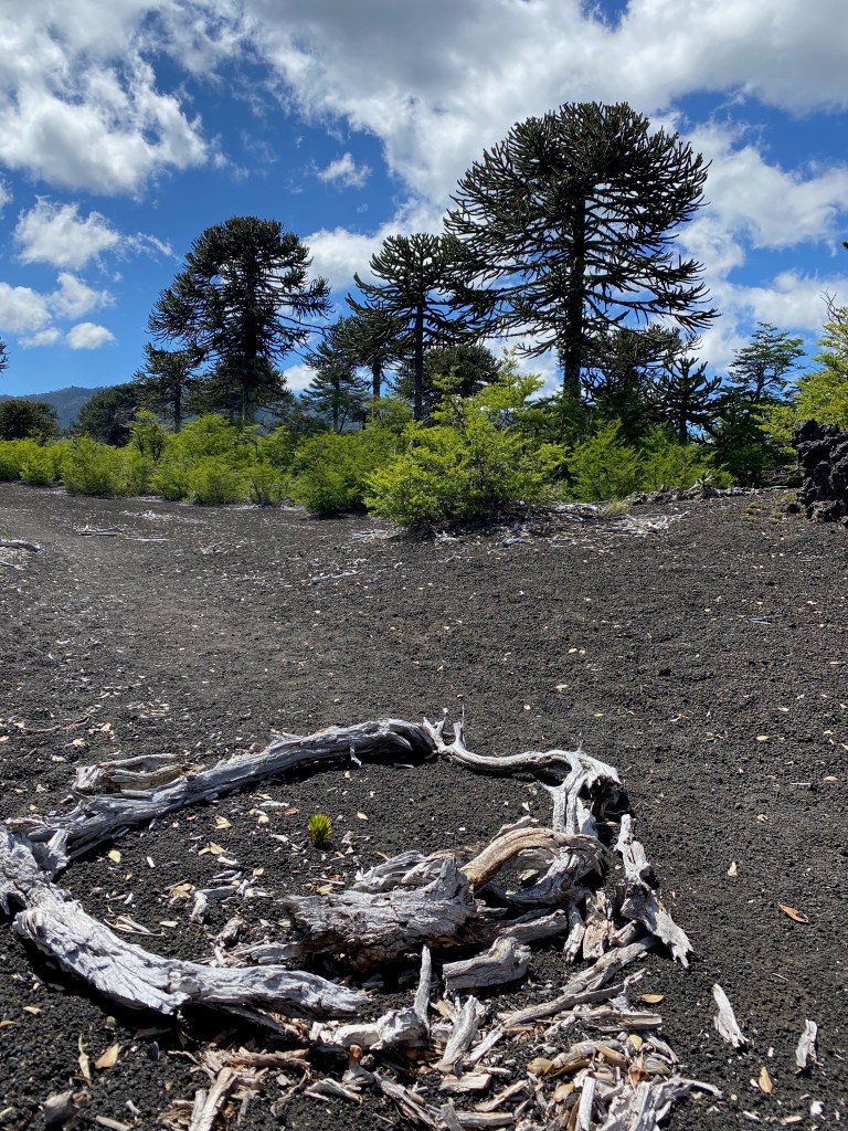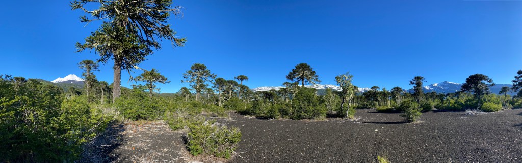 Another day of clear wonderful weather so we went and did the Sendero de Chile Contrabandista trail with the children. The girls running the cabin said not many people do that trail and we couldn’t figure out why as it was nice and flat, wonderful views of the volcano and so fun to wander through the araucaria trees with the crunch of volcanic rock under our shoes. It rather sounded like crunchy snow! We even saw a baby araucaria tree ringed with driftwood to protect. The kids christened it “Groot”! My husband ran this trail as a loop from the door of the cabins in the mornings and really liked it. In the afternoon we spent the day on the beach by Hoyon campground which had really nice, large sites. My husband thought they were the best campsites (based on what he saw on his runs).