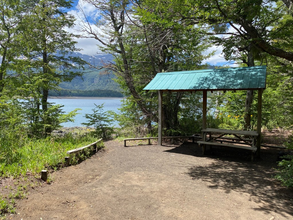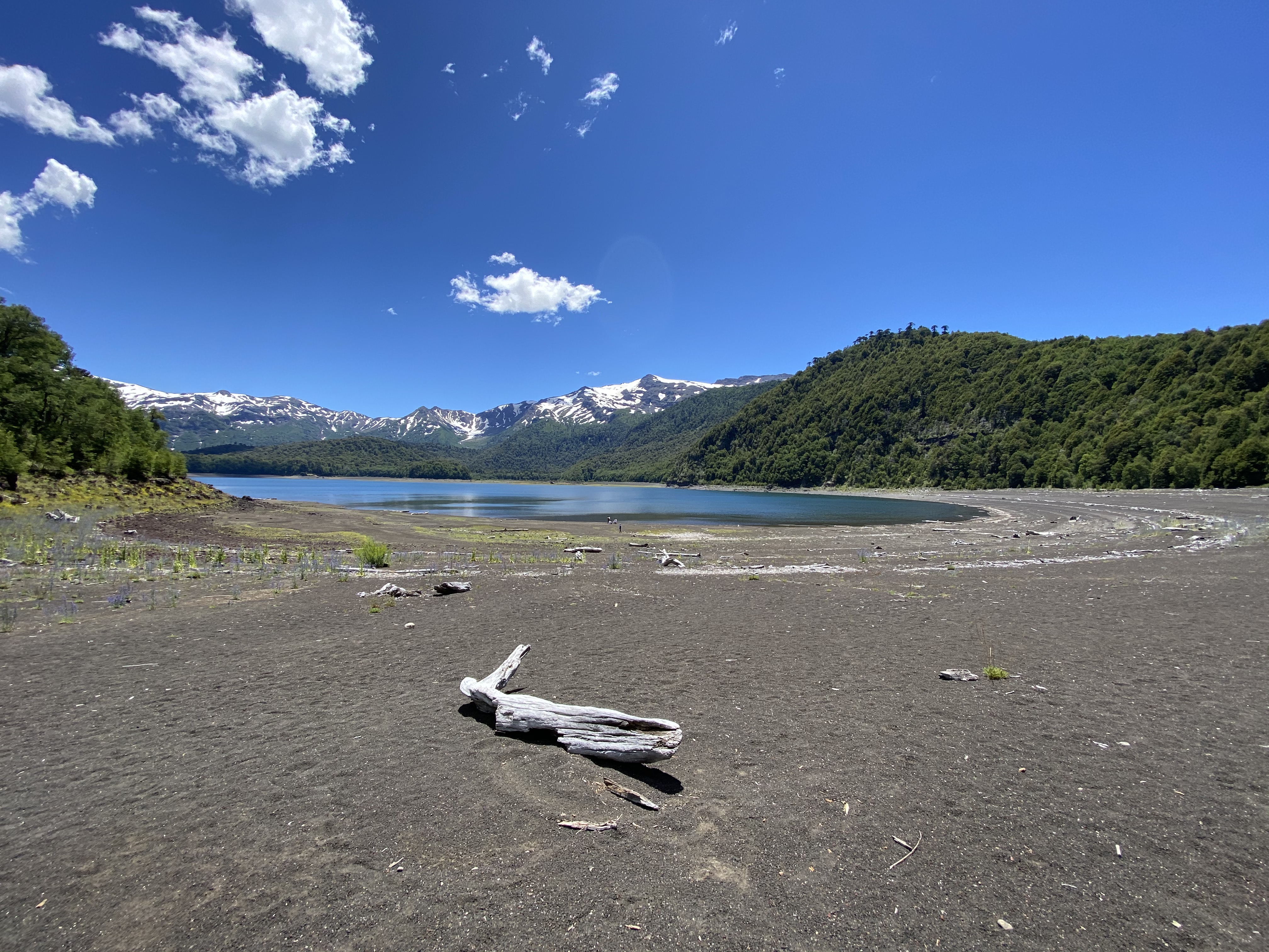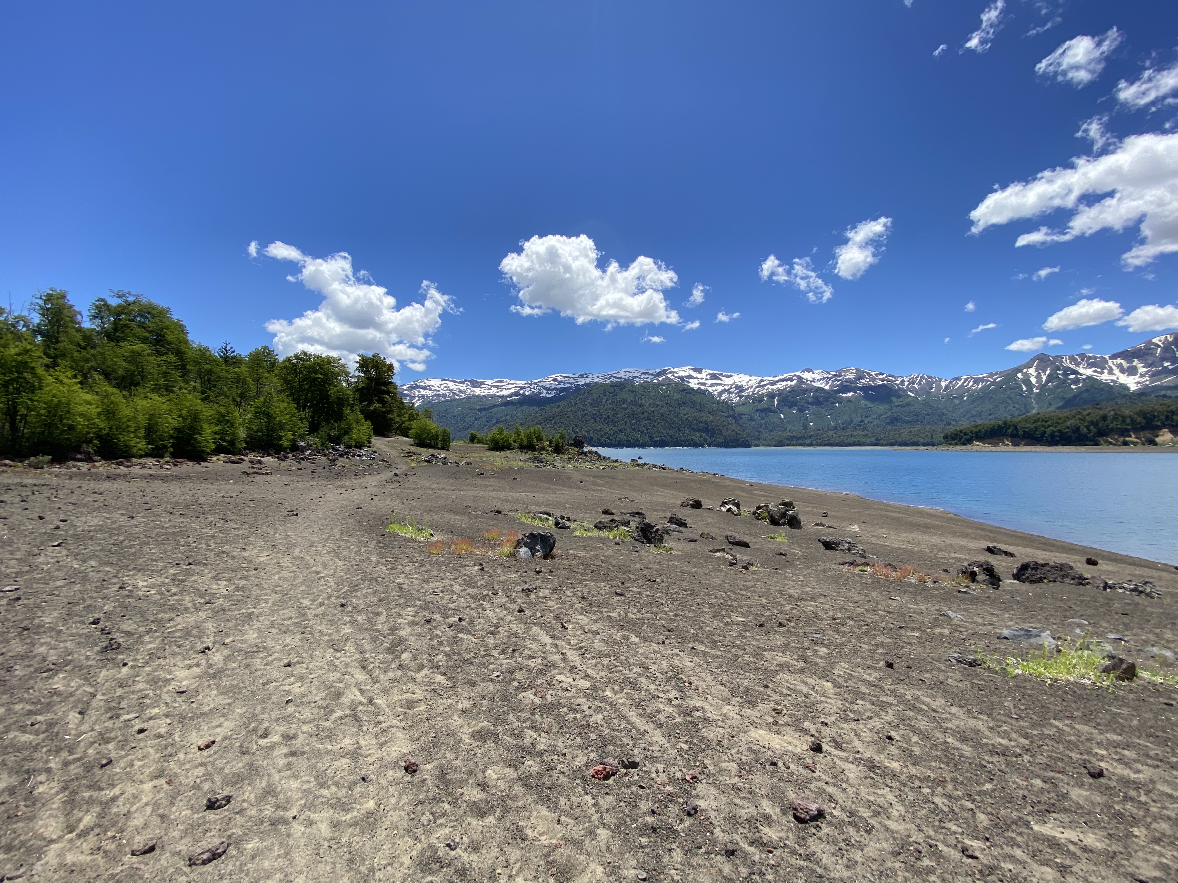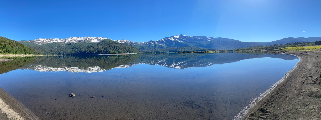 Another day of clear wonderful weather so we went and did the Sendero de Chile Contrabandista trail with the children. The girls running the cabin said not many people do that trail and we couldn’t figure out why as it was nice and flat, wonderful views of the volcano and so fun to wander through the araucaria trees with the crunch of volcanic rock under our shoes. It rather sounded like crunchy snow! We even saw a baby araucaria tree ringed with driftwood to protect. The kids christened it “Groot”! My husband ran this trail as a loop from the door of the cabins in the mornings and really liked it. In the afternoon we spent the day on the beach by Hoyon campground which had really nice, large sites. My husband thought they were the best campsites (based on what he saw on his runs).