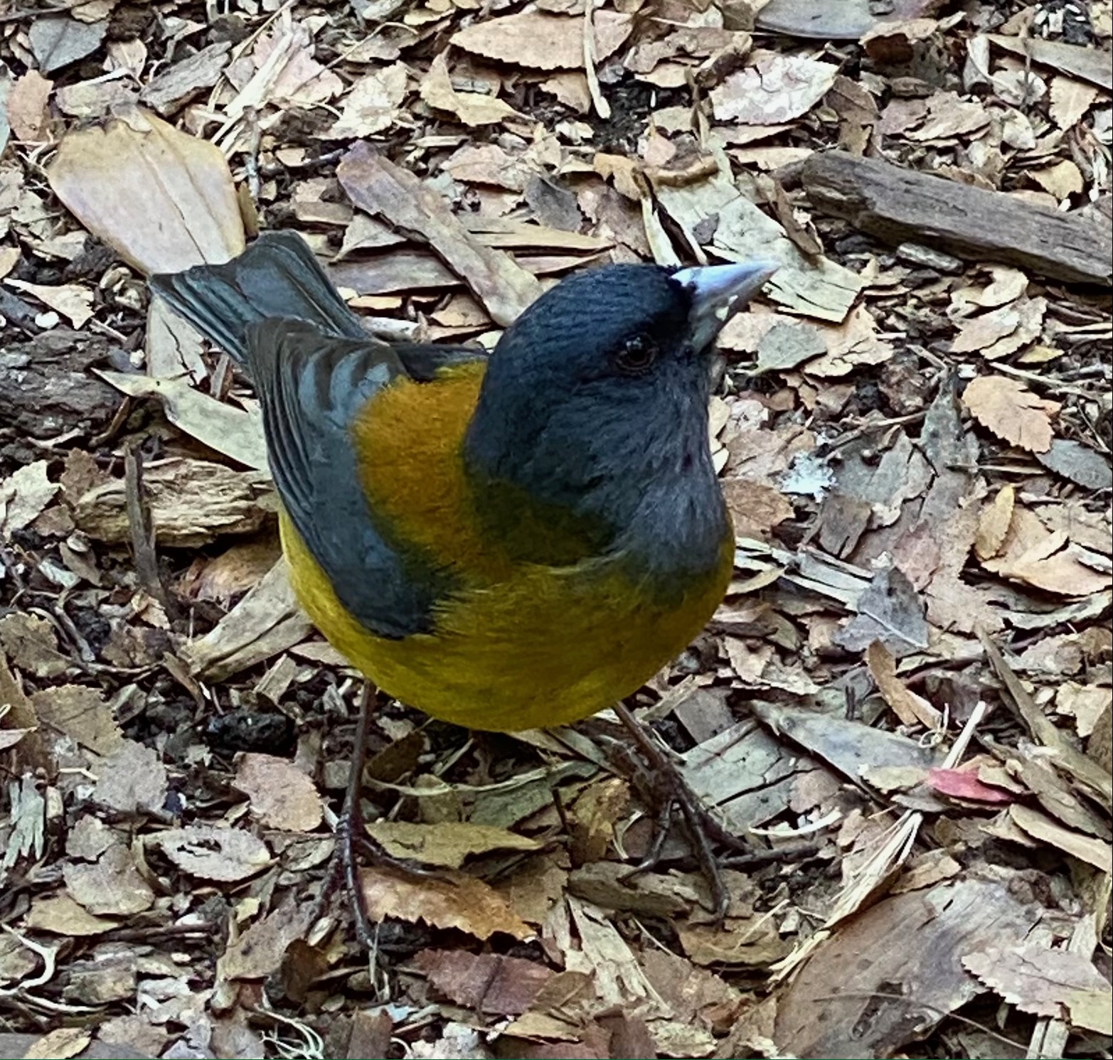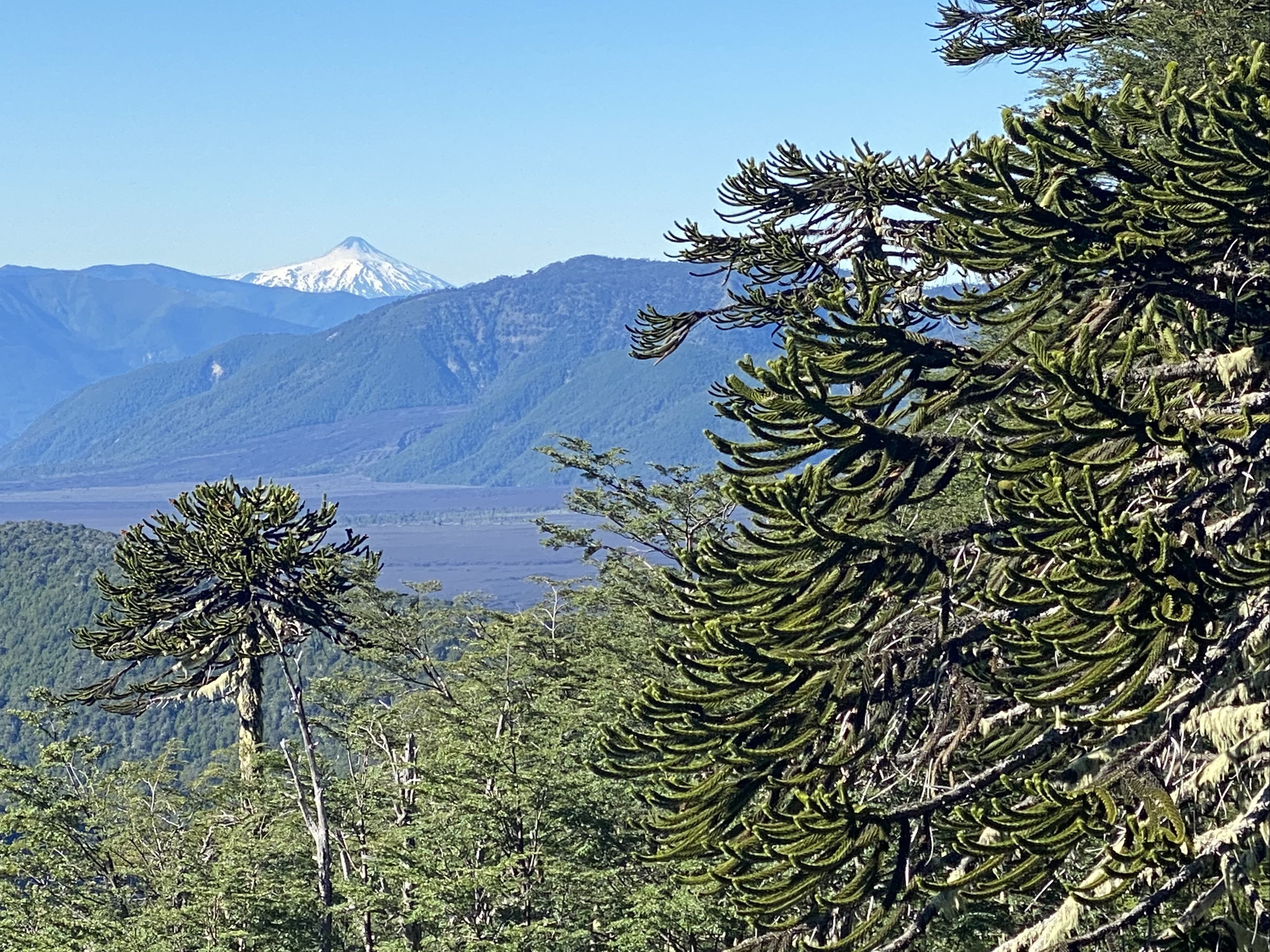 We did the Carpintero hike to find the mother Araucaria tree. We didn’t see any carpinteros (woodpeckers) on this hike but we did see a gorgeous tame plump yellow bird, many lizards who scuttled away as we walked on the path and we heard rolling thunder and saw lightening at the end. The whole hike (which takes you to a lake) is 8 km return. The Mother tree is 1,800 years old and called the mother because it’s the oldest one in the park, but actually it has the pine needles of a male tree. It stands an incredible 50 metres high. It took us just over an hour to reach the tree, about 2.5 km one way, and we had lunch on the benches by the Mother tree. It rained in the afternoon giving us picturesque views of Llaima volcano covered in snow once the clouds cleared.