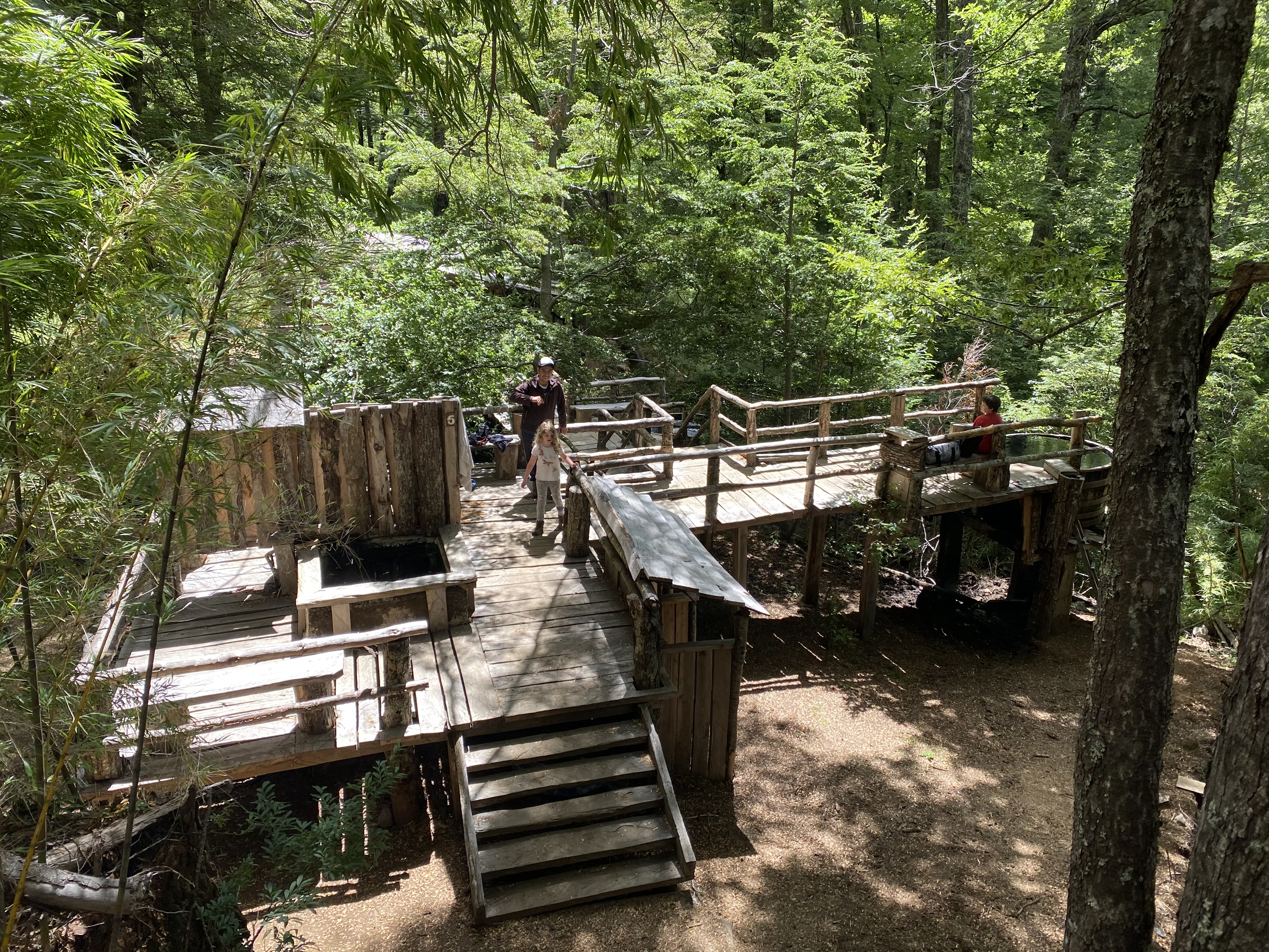 We left the park around 9 a.m. and drove towards Curacautín to Cañón del Blanco where we had booked horseback riding and thermal tubs. (You can also do inner tubing but we ran out of time.) The horses were really tame and the five of us went with two guides. The children (ages 11, 9 and 7) were all on their own horses. We went through fields, up hills, into dense forest where the bamboo was eaten en route by the horses, and over rocky wide rivers. At one point the guide in front heard and saw a puma up the hill! We were on the horses for 2.5 hours, then 2.5 hours of a hike up a hill to see a geyser. This part would have been better if our children had typical abilities. They did it and the crossing of the river was fun, but it was really hard for them. Then we had an hour soak in the hot thermal tubs, then back to our car in a truck (you can also return via horse). The total was $200,000 for the five of us and we brought our own picnic lunch. It was money well spent! The kids said it was the best part of the whole holiday. There are rustic changing rooms on site and each family/person is allocated their own hot tub with a view. We carried swim gear, flip flops and our lunch in backpacks.