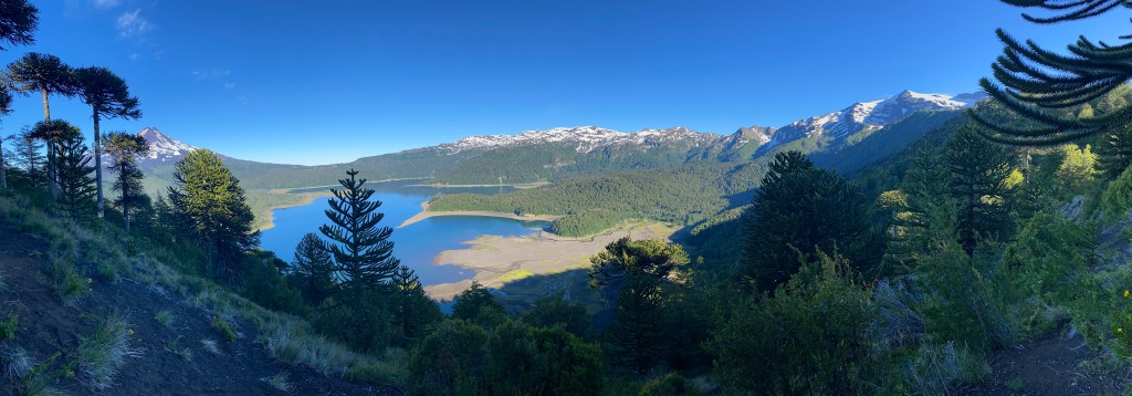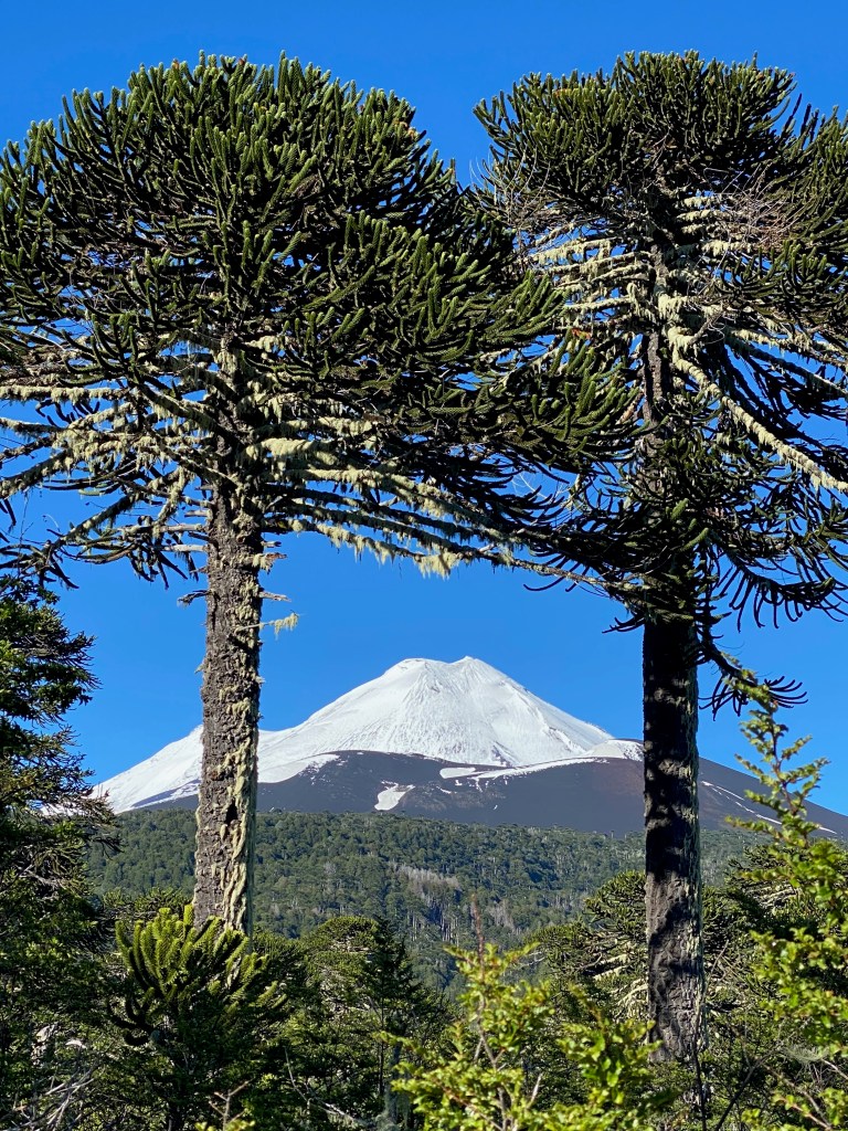 Parque Nacional Conguillío is one of our favourite parks, the ancient araucaria trees soar up reaching to the southern skies. Peppered with snow-capped volcanoes and crystal clear lakes, it is truly a gem. It’s not super far (for a Canadian anyway!) as it’s only 750 km south of Santiago.