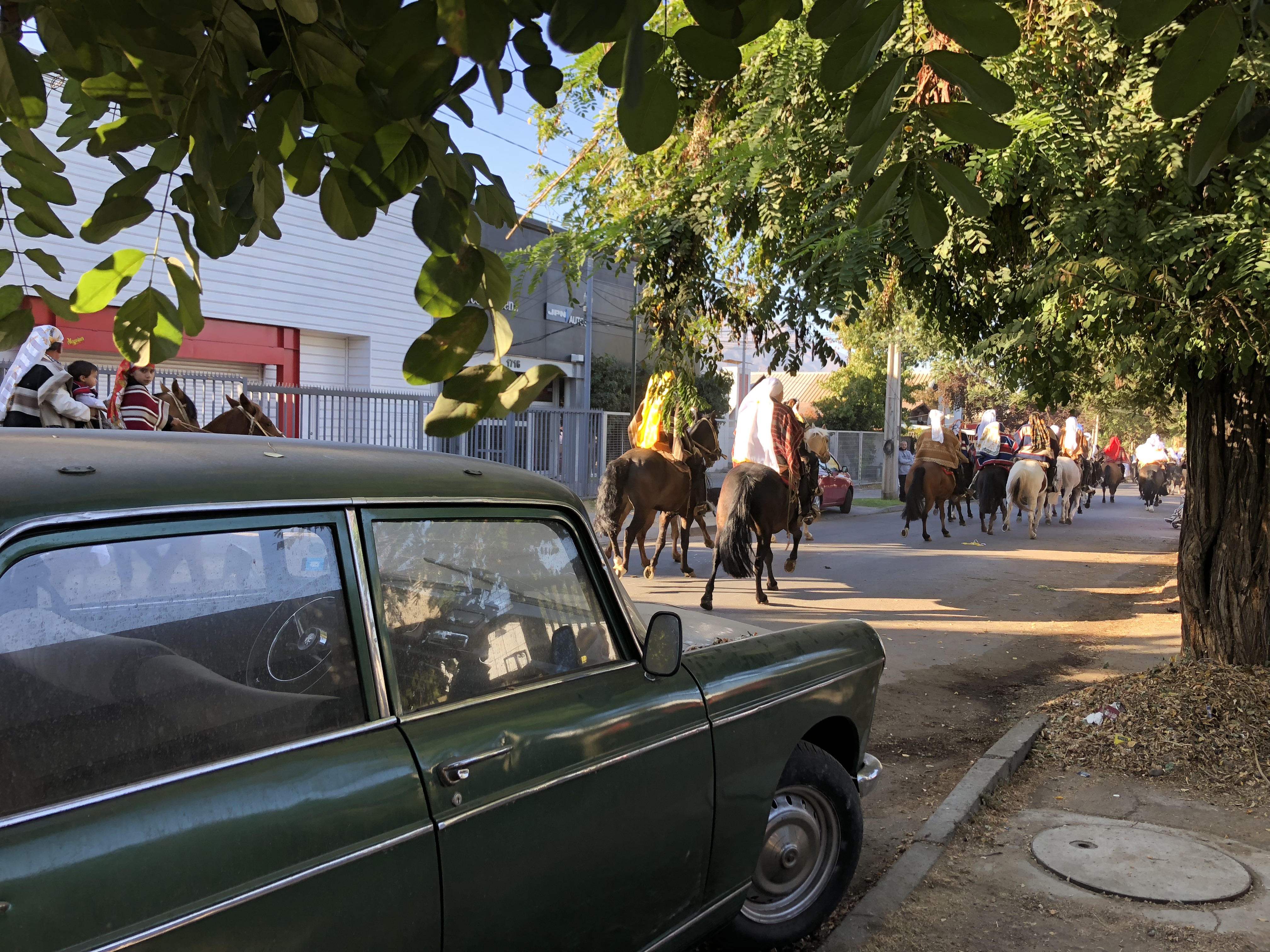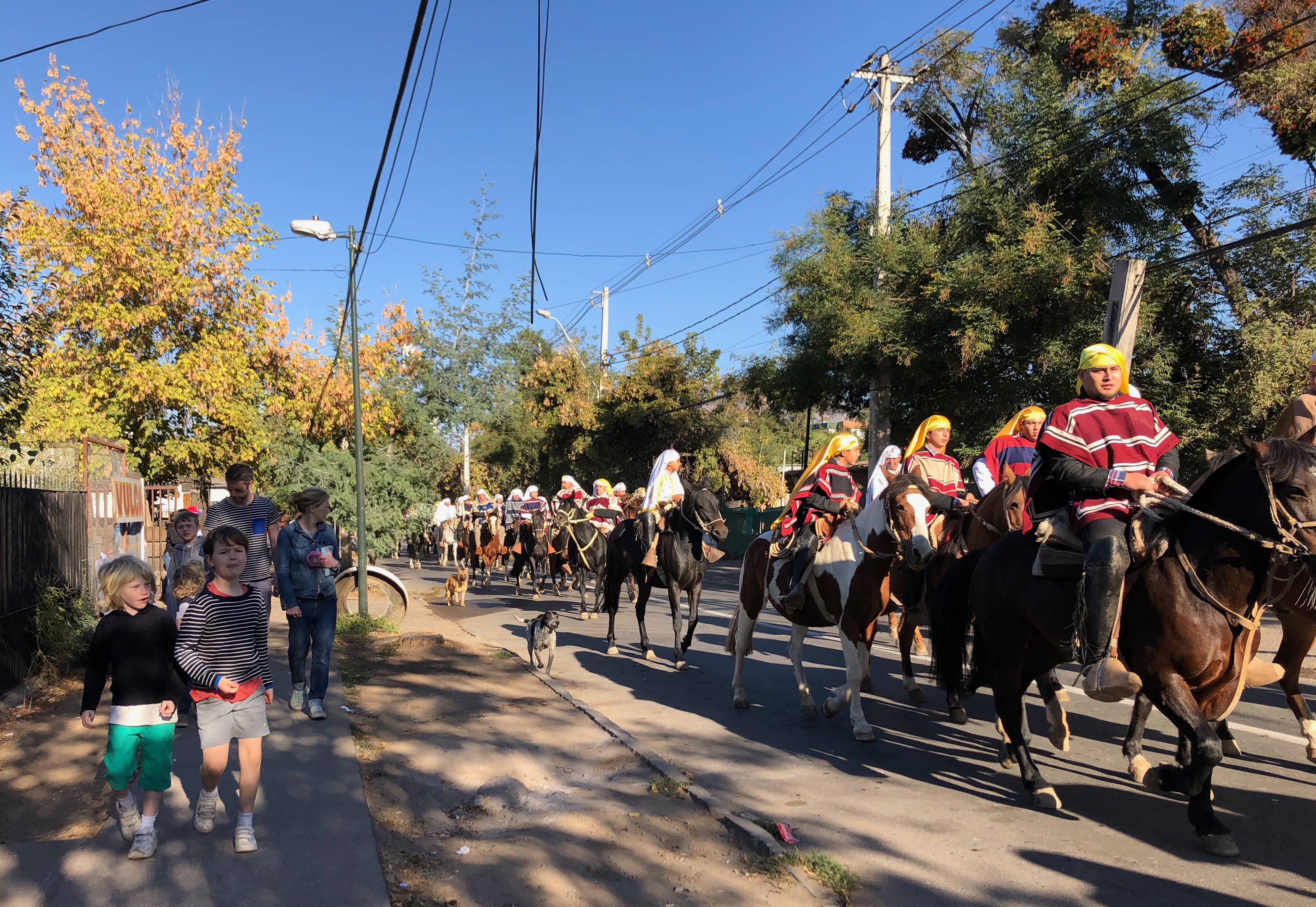 It is always the first Sunday after Easter, get there around 8:30 a.m. We usually park along the road Lo Barnechea by the El Rodeo end and then we walk to El Gabino and wait until we hear the horses. Then we just follow the crowd along on the sidewalk which usually goes down El Gabino to Ruben Barrales and then loops back up and around.