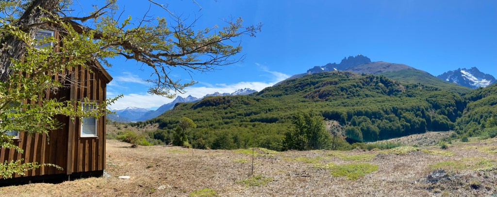 On our way back to Cerro Castillo on the X-723 we passed some very nice cabins including Palo Lodge which is on Airbnb. And we saw signs for Cabañas Lago Tamango. We stayed at Chalet Cerro Castillo which is a beautiful cabin on private property with trails for hiking, picture window views of Cerro Castillo and a kitchen-living room you will never want to leave. Clara welcomed us (it was our second time seeing her as she managed the cabins we stayed in the last time!) so it was lovely to see a familiar face. She stocks the kitchen with a wonderful breakfast of all kinds of hot drinks, fresh bread and butter/jams and cereals for the children. The house has everything you could wish for and is so comfortable with local artesian touches. It’s the perfect viewpoint for sunsets and we heard a terrific thunder and lightening storm go shooting down the canyon one night.
