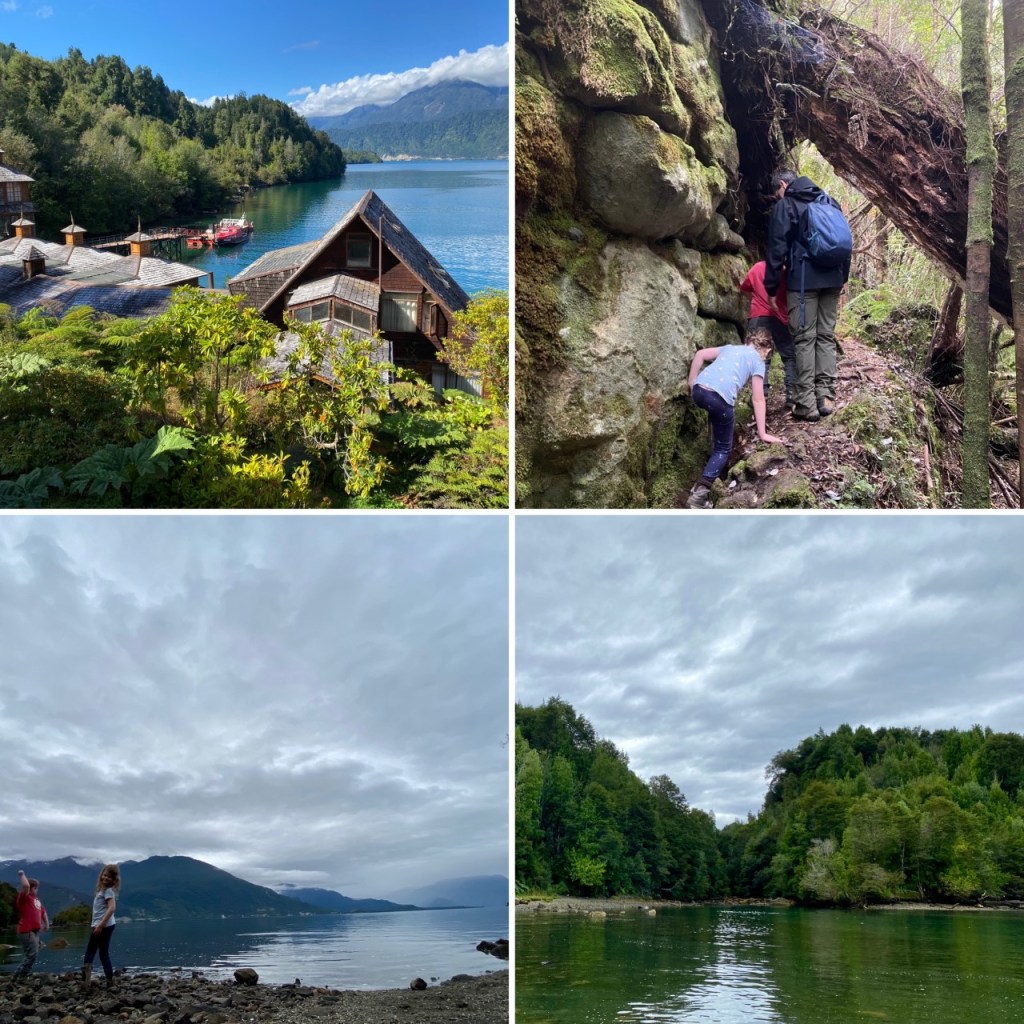 We all loved our stay at Puyuhuapi Lodge and Spa, the children especially loved the kid’s menu and huge glasses of Fanta! The rooms were comfortable and we all enjoyed the hot pools which are nestled along a trail in the woods with views out to the water and fjords. There is also a huge indoor swimming pool and hot tubs. While we were there we did a 4 km hike through the woods and to a deserted small beach. It was quite muddy but the children did well climbing up and over logs and swinging through the trees. We rented kayaks another day and otherwise just enjoyed the facilities.