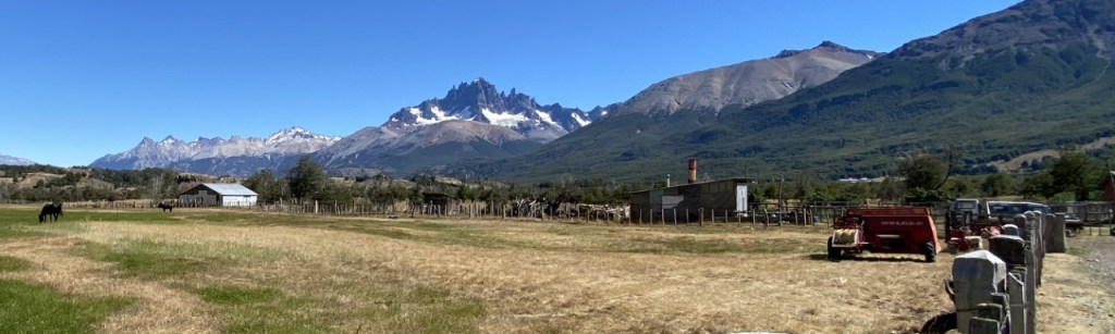Cerro Castillo and mountains are at your back but the view as you drive is of stubby trees, rock cliffs and outcrops. We ate at a restaurant recommended by the cabin owner, Doña Leo. It was home cooking and delicious. It is on a little farm so it’s perfect for children with alpacas, dogs, chickens and lots of running around room after a long flight. They also have cabins to rent.