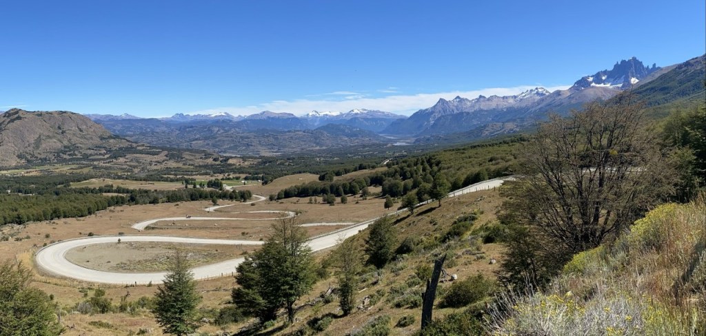 It was still mid-morning so we took a drive down a side road (the X-65) to Puerto Ingeniero Ibáñez. It was a beautifully sunny day and as you drive towards Puerto Ibáñez you are on the top of a plateau with cliffs to your right cut out by the Ibáñez river below, as the road slowly winds downward. We had breathtaking views the whole way.