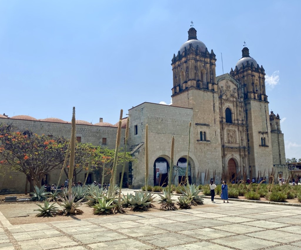 We first went to Santo Domingo church, which was a good thing as it closed from 1-4 p.m. There are really nice shops across the street as well. Then we went to Zandunga for lunch, they were great with the children and made them simple chicken and rice and cucumber for lunch. One child had delicious cheese empanadas. I had the tasting plate which was really nice and a great way to try everything. They had a Mexican gin as well. There are nice shops surrounding the restaurant. We wandered around the streets and then went to La Catedral for supper. They were also wonderful with children bringing them pasta. We had chapuline tacos (crickets), my husband had the green mole and I had shrimp tacos — the best meal I have had in Mexico.
