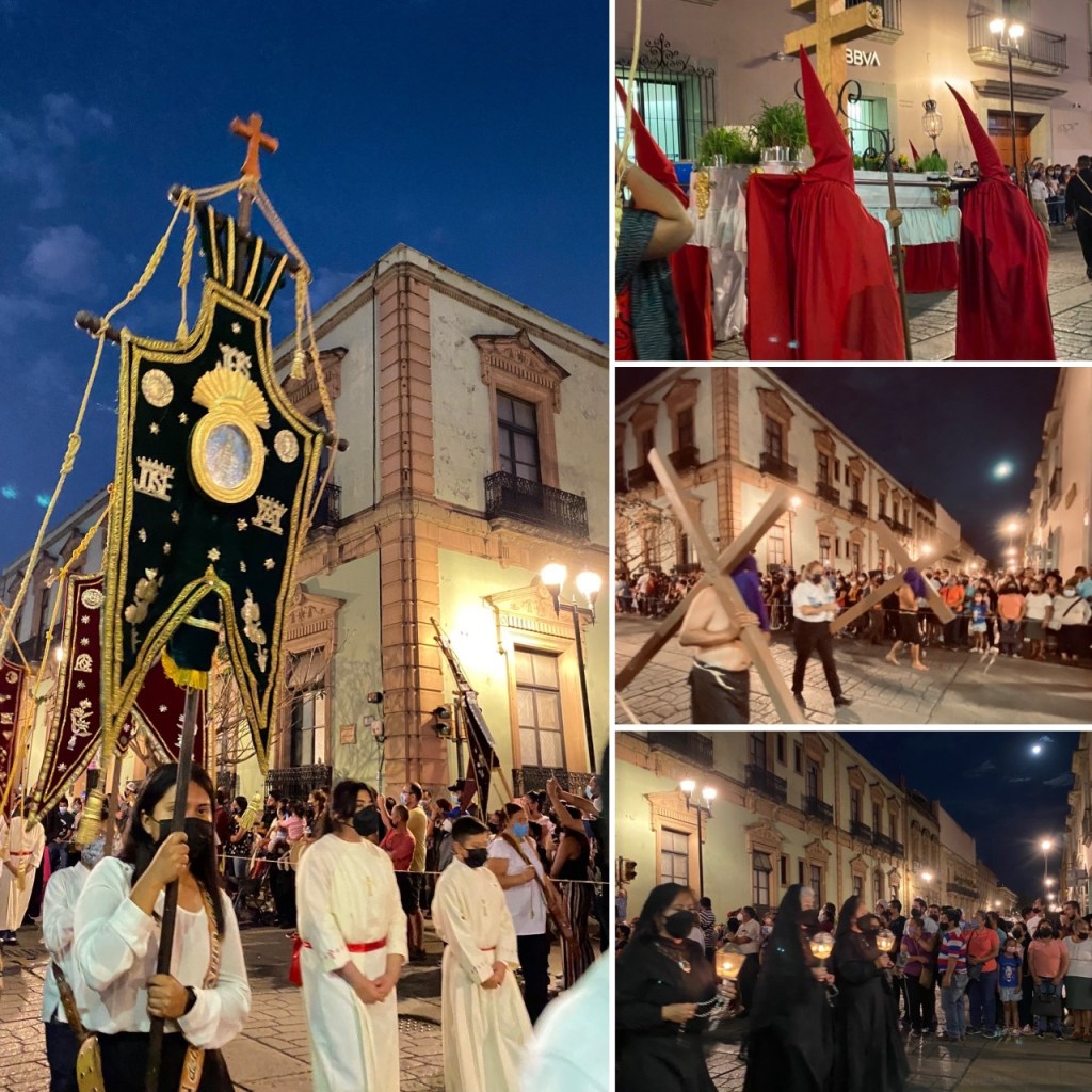 It was Good Friday and the tourist agents who asked us to do a survey (they somehow always find me for a survey in Spanish!) but they were very nice and told us the Procession of Silence route which I was quite keen to see. In the end it went right by our hotel and was so lovely to see the whole buzzy city turn to silence. The different churches and chapels had their banners and icons out for a parade, some men carried crosses for the whole route, and others wore names of the apostles. Some people who were carrying different statues wearing hoods which area meant to symbolize humility and mourning. It was a reminder of Easter and the gift that truly was given for us.