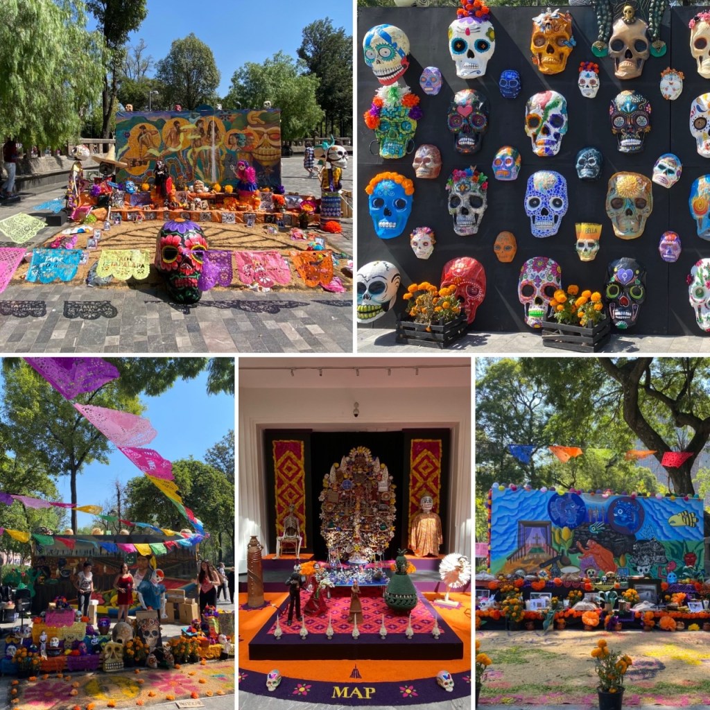 The last year the Catrinas and Alebrijes were on display in the Zócalo for the first week of November and then in MAP (Museo Arte Popular) which has an incredible gift shop as well. We did a nice walk from Bellas Artes, through the Alameda Central Park, to the Zócalo and then back up via MAP to see the sites.