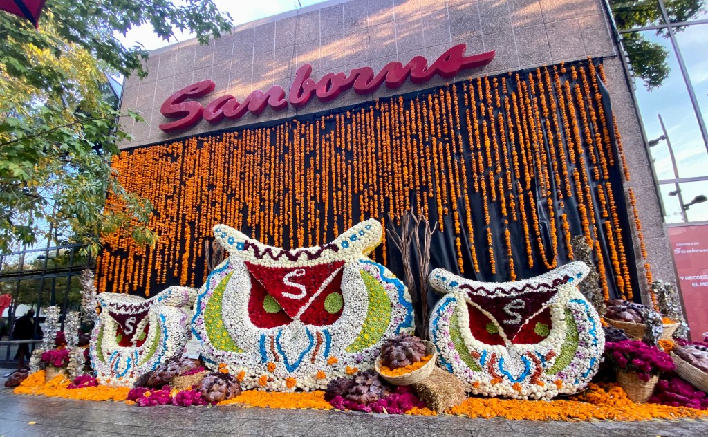 Let me know what else there is not to miss in Mexico City for Día de los Muertos! Frida Kahlo’s museum had a nice ofrenda last year and during the last week of October, on calle Masaryk, all the shops had gorgeous floral displays on which are not to be missed!