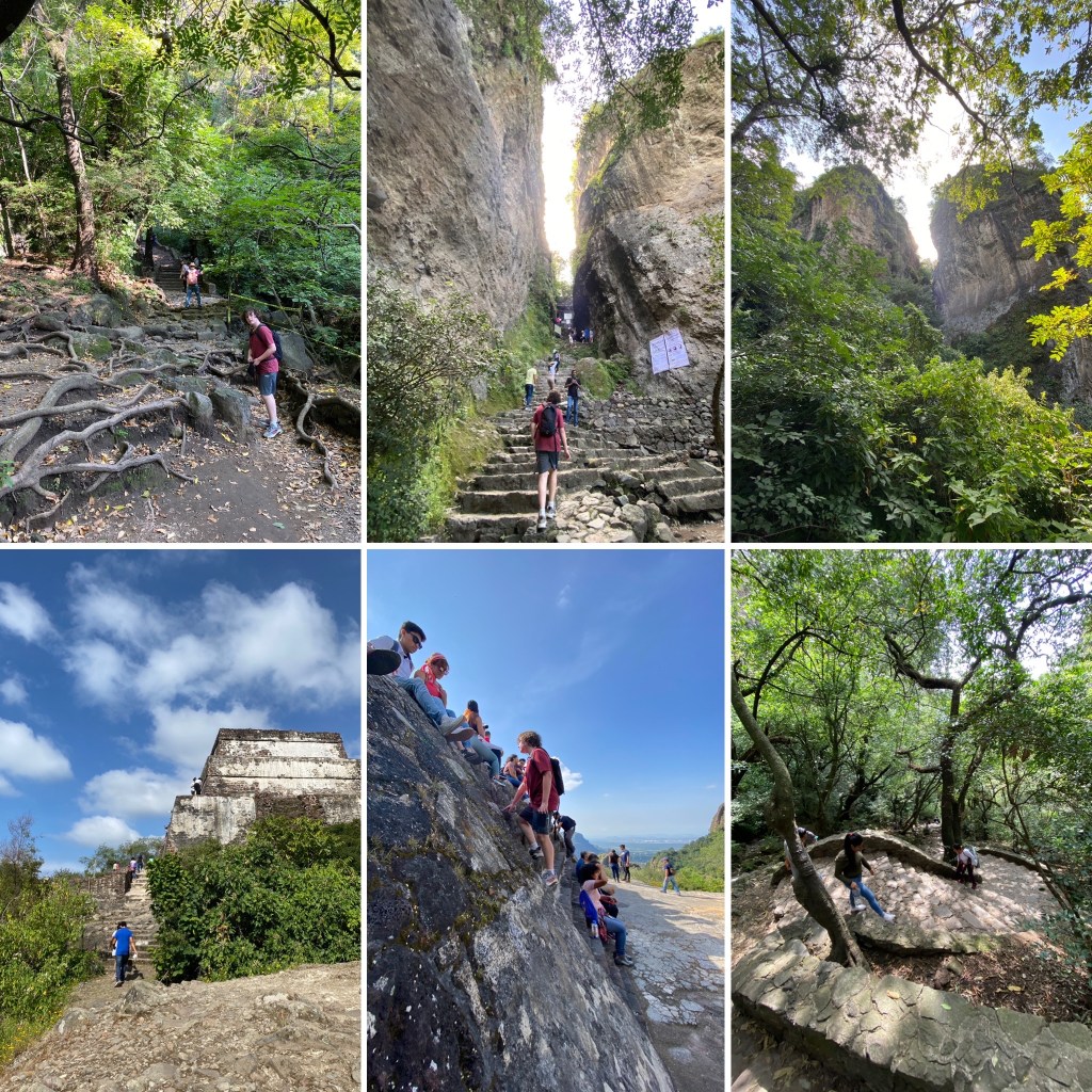 The next day my eldest and I decided to hike Tepozteco to the top to see the Temple built to the god of pulque (pulque has been made for thousands of years from the fermented sap of the maguey plant). It’s 600 m straight up a winding, shady path to arrive at the amazing view and the temple at the top which was built 1150-1350 BC. You can easily access the main path from the town, through the stands selling water, snacks and artesania. Then it’s a 45 min hike up to the top and a 30 min hike down. (Aprox 92 floors according to my phone.) Bring water and wear sneakers as it’s a path with tree roots and stone steps (of course we did a stroller coming up on our way down!). In the morning it’s much cooler and fewer people crowding the path, it was getting crowded on our way down. When we got to the top there was a security guard, I’m guessing in his 70s, who does this commute every day to work! What a workout as it’s straight up and straight down. Closed Monday and Tuesday. It said 45 pesos entrance fee but we didn’t pay any fee. We also were told we would see coati, but unfortunately we didn’t see any.
