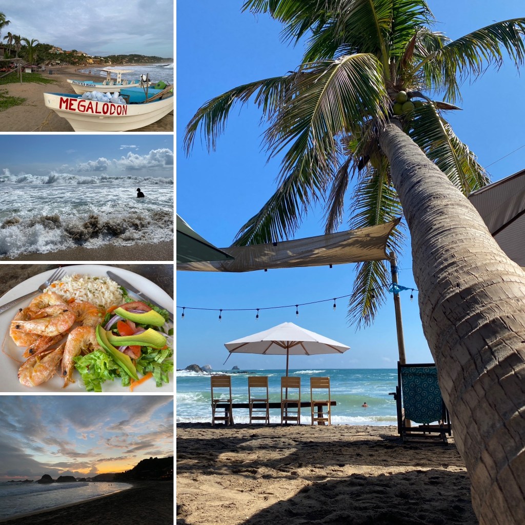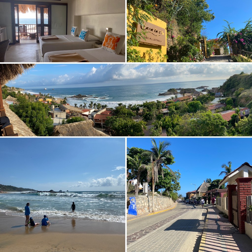 We went to San Agustinillo with three generations for a week-long beach holiday. It was an easy flight from Mexico City to a small, laid back beach town which also had great restaurants, warm waters and nice warm heat! It is on a bay of nine beaches, the Oaxacan beaches, and close to Hualtulco airport.