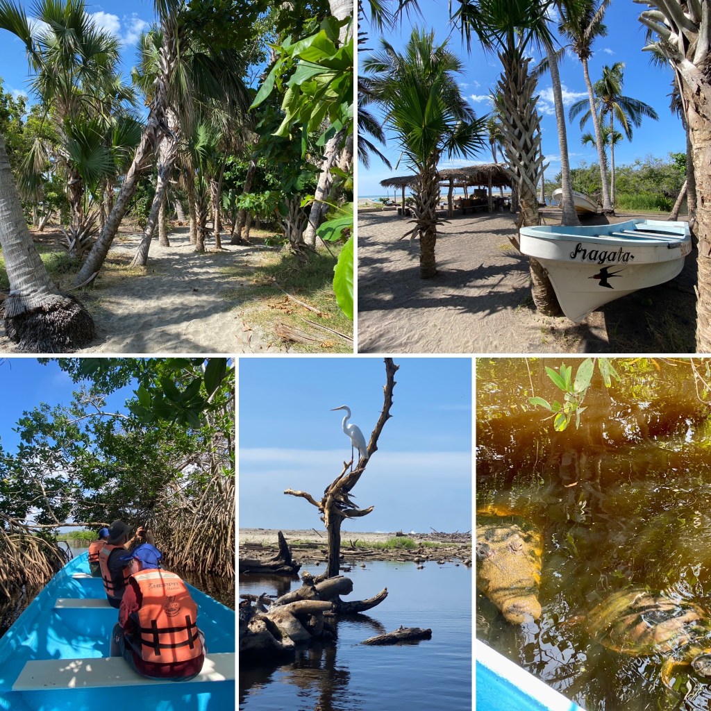 One day we drove to Laguna Ventanilla, a small town 15 minutes away, which is a nice little beach spot (super small) but it’s also on a lagoon. The lagoon is right on the ocean’s edge and you can rent a tour to see iguanas, herons, crocodiles and turtles. We all really enjoyed this activity. It was boiling hot, so wear protective long sleeves, hats, sun screens and bring lots of water. We had a private tour for $1200 pesos for a few hours. The beach was so hot and the waves were so high that we didn’t want to risk it with the children so we went back to the pool.