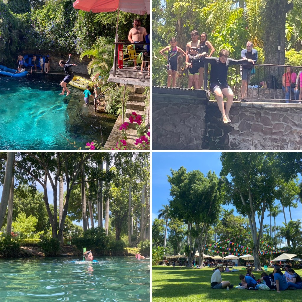 My husband lived in Mexico City for three years when he was a pre-teen, and one of his fondest memories is of Las Estacas. Back then there was very little surrounding this natural, lazy spring-fed river. Just a lady at the entrance making quesadillas and not much more! But in the intervening years, the family who owns the land, has sent their children to the USA to learn about eco-tourism and how best to develop the site. And now there are camping grounds, large grassy plots to play, restaurants, cafes, cabins and relaxing areas for day-tripping families who float in the river or enjoy the swimming pools.